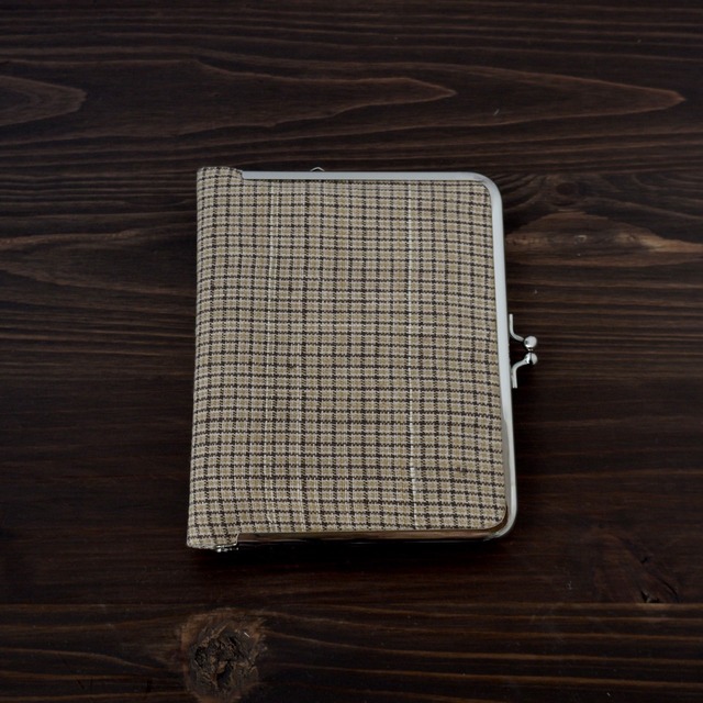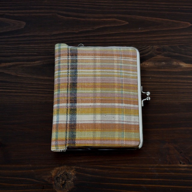 しかくいフォルムですが、手縫いで仕上げているためふっくらとした雰囲気のがまぐちです。 二つ折りのお札がすっぽり入り、内ポケットには小銭も入れられ、少し現金を持ち歩きたい時にちょうど良いサイズ。ちょっとしたお化粧品を入れたり、アクセサリーを入れたり。お出かけ時に活躍してくれそうです。 穏やかな丹波布を、日々の生活に取り入れていただけると幸いです。 丹波の草木の色合いと手紡ぎ糸の手触りを、お楽しみください。 . . 丹波布は、使うほどに色や手触りが少しずつ変化していきます。その自然の変化を楽しんでいただけると幸いです。 【染色材料】 各布の写真に記載しています 【素材】 丹波布:各布の写真に記載しています 内 布:綿 100%(オーガニックコットンガーゼ) 口 金:黒ニッケル(日本製) 【サイズ】 ※個体差があります。ご了承ください。 本体(外寸):縦 12cm(げんこ含む)× 横 10.5cm、マチ無 本体(内寸):縦 10cm × 横 9.5cm 内ポケット :深さ 5.5cm × 横 9.5cm 【ご注文方法】 ::: 選択できる丹波布のみ選択肢に表示されますので、お好きな丹波布をお選びください。選択肢に無い丹波布は既にがまぐちとして商品掲載されていますので、該当の商品ページからご注文ください。 ※ 注文受付順に製作するため、ご注文のタイミングによっては選択された丹波布の残量不足によりお作りできない場合がございます。申し訳ありませんが、その際は別の丹波布へご変更いただくか、ご注文をキャンセルさせていただくことになりますので、あらかじめご了承ください。 ::: 受注後10日程度で発送となります。それより遅れる場合は、事前にご連絡いたします。 ::: 複数個オーダーいただく場合は送料が変更になることがあるため、注文前にCONTACTページよりご連絡ください。 【事前にご確認ください】 ::: 厚めの接着芯を使用しているため、口金を大きく何度も広げると、口金から布や紙紐が取れる可能性があります。過度に広げ過ぎないようご注意ください。もし口金から布等が取れてしまった場合は、口金の中に接着剤を注入し、マイナスドライバーなどで布を入れ込み乾燥させてください。 ::: 内ポケットは左右両側の口金に沿って縫い付けられており、ハードカバーの本や手帳の場合、大きさによっては表紙が入らないことがあります。事前にサイズをご確認いただくよう、お願いいたします。 ::: 約350ページ程度の文庫本まで対応できる厚みですが、本の厚さによってはがまぐちを完全に閉めることが出来ないことがありますので、ご了承ください。 ::: 布の写真は、お使いの端末の設定によって色の見え方が異なります。 ::: 手織り・手縫いのため、織り目や縫い目にヨレがある場合がございます。 ::: 布の中に黒いツブが紛れていることがありますが、これは綿の殻です。害はありませんのでご安心ください。気になる場合は、ピンセットなどで取り除いてください。 ::: 直射日光や電灯の光に長時間当たる環境でのご使用や保管はお避けください。 ::: 使用するうちに、少しずつ変色や褪色は進みます。その草木染めの自然の変化をお楽しみいただけると幸いです。 ::: ご不明な点がございましたらCONTACTページからお問い合わせください。メール対応のみとなり、お電話ではお受けできませんのでご了承ください。