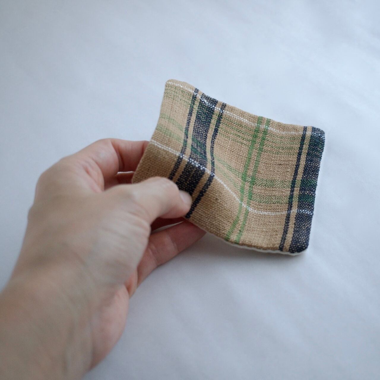 そんな素朴な丹波布でコースターを作りました。ガラスや陶器のカップに、丹波布がしっくりと溶け込みます。美味しいご飯とともに、ほっとひと息つきたい時に、お好きなお飲み物と一緒にお使いください。