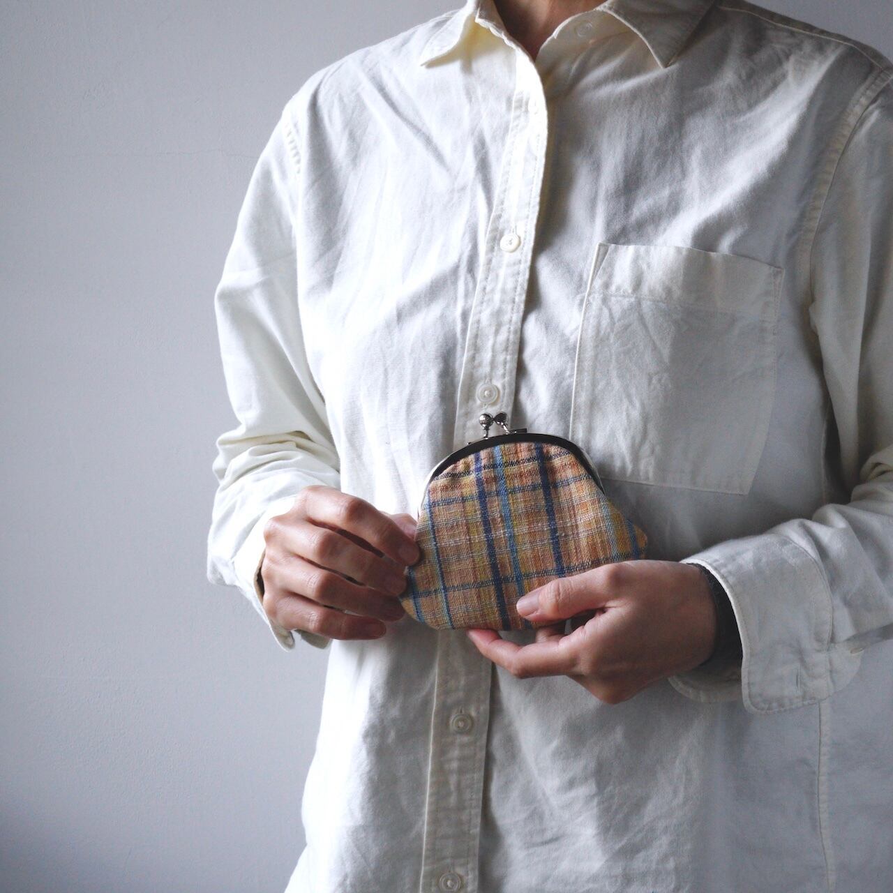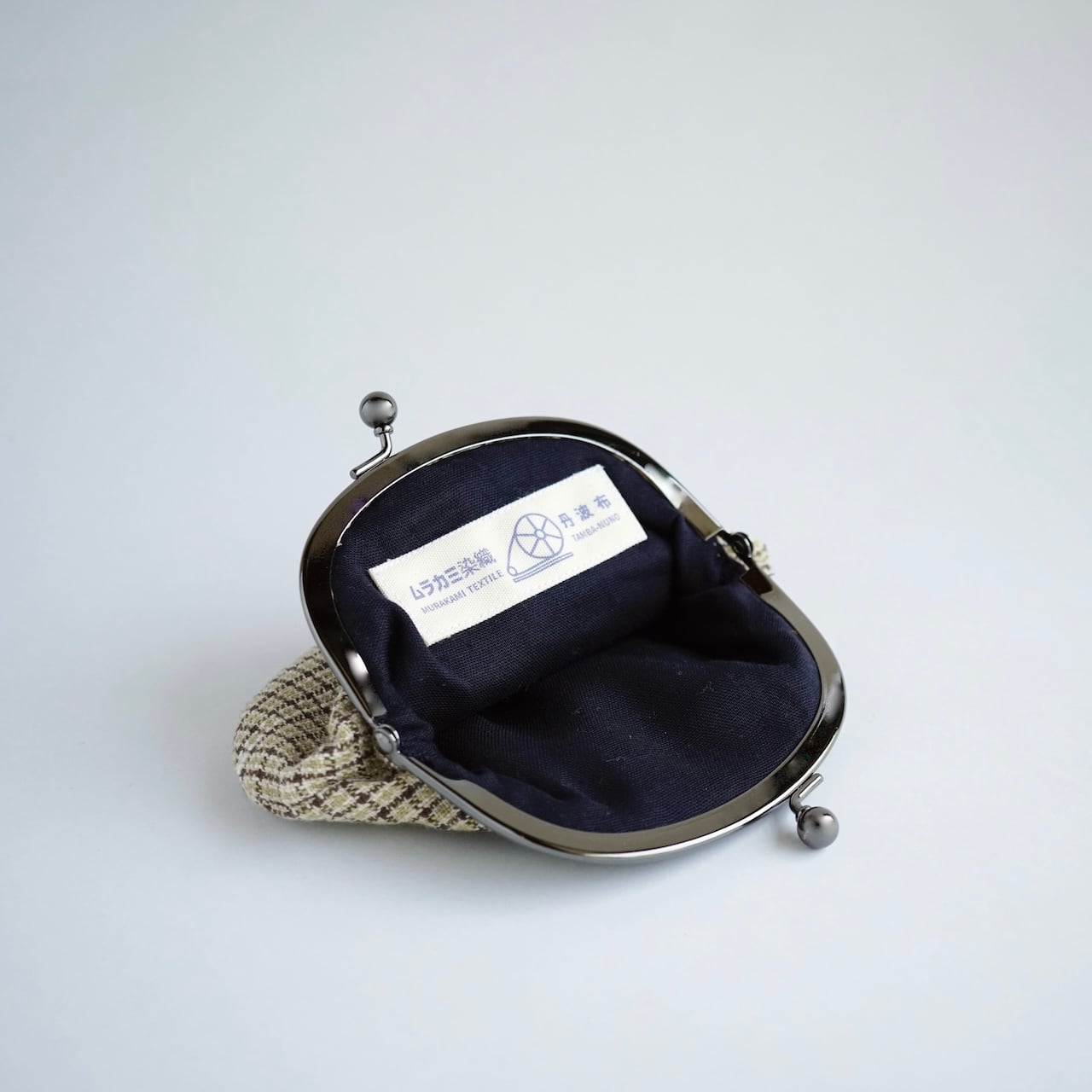 このがまぐちは手縫いで仕上げられており、そののふっくらとした風合いが合わさり、丹波布の穏やかな雰囲気がより引き出されています。