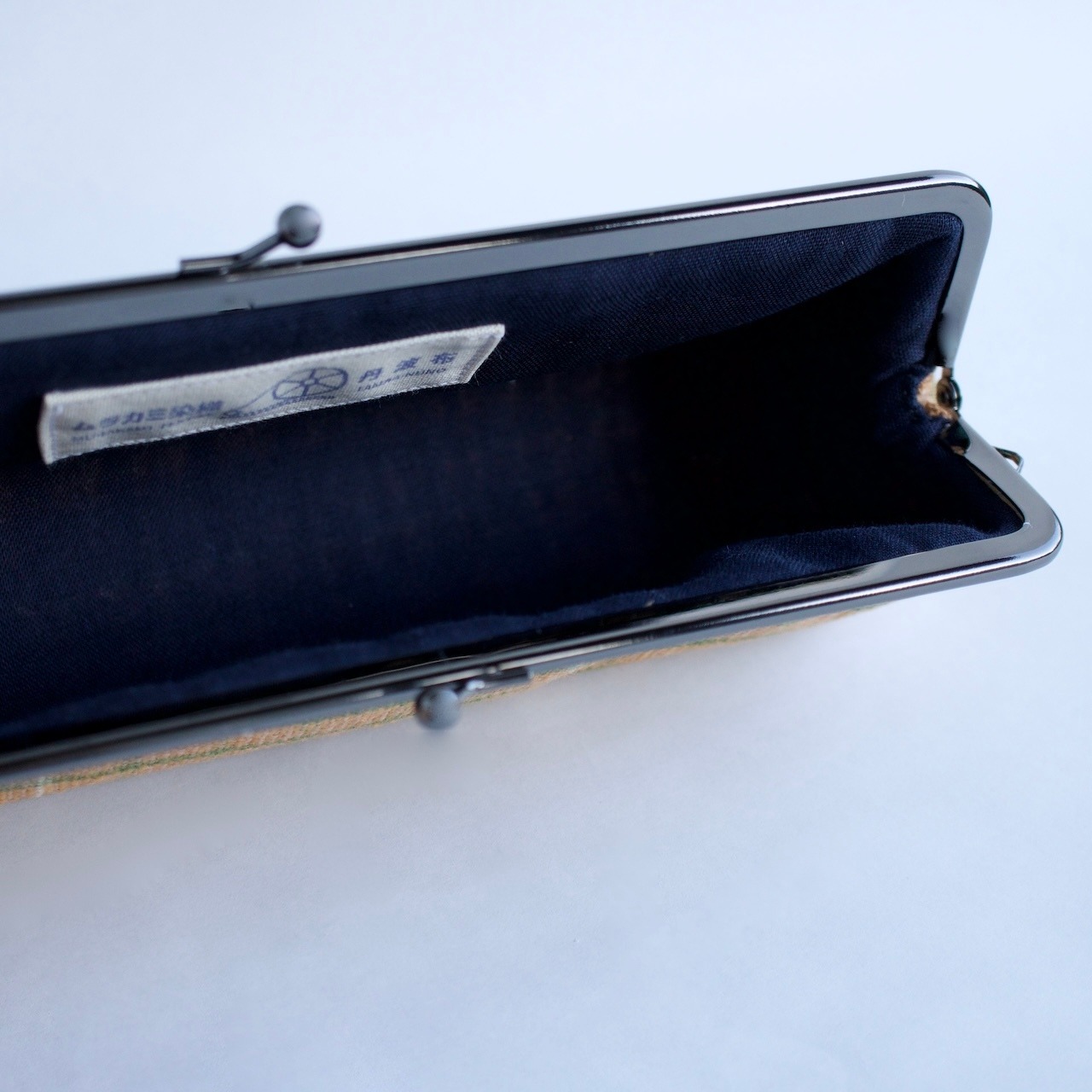 内寸:縦 約6.5cm × 横 約22cm(最大幅)、口金幅:約20cm