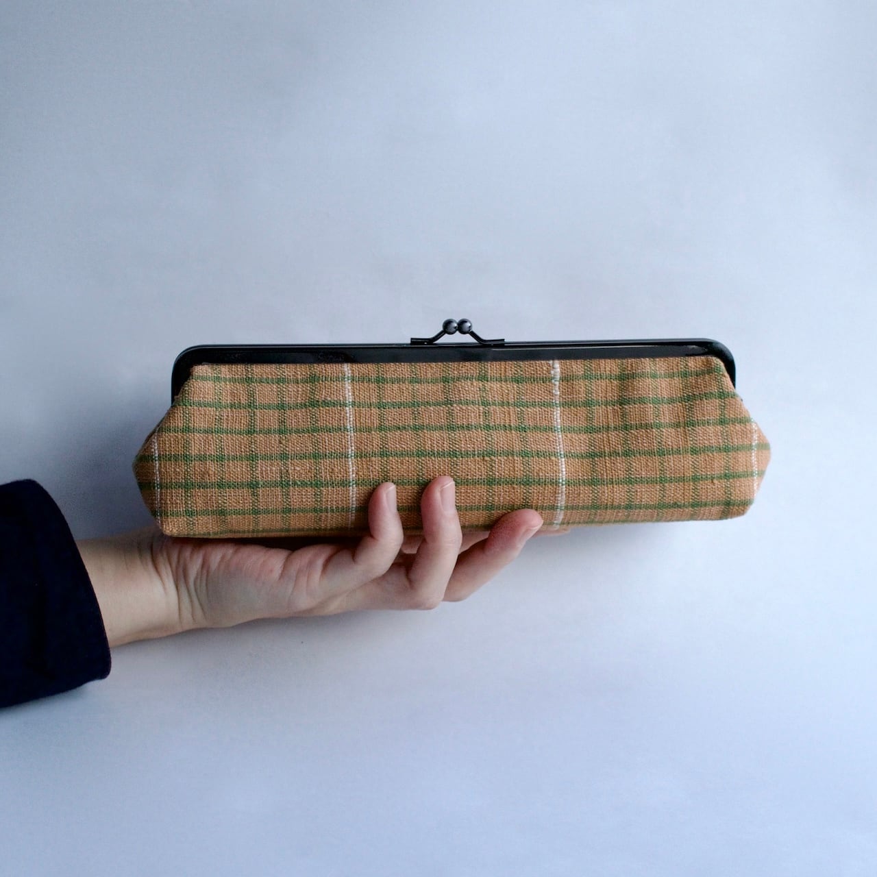 内寸:縦 約6.5cm × 横 約22cm(最大幅)、口金幅:約20cm