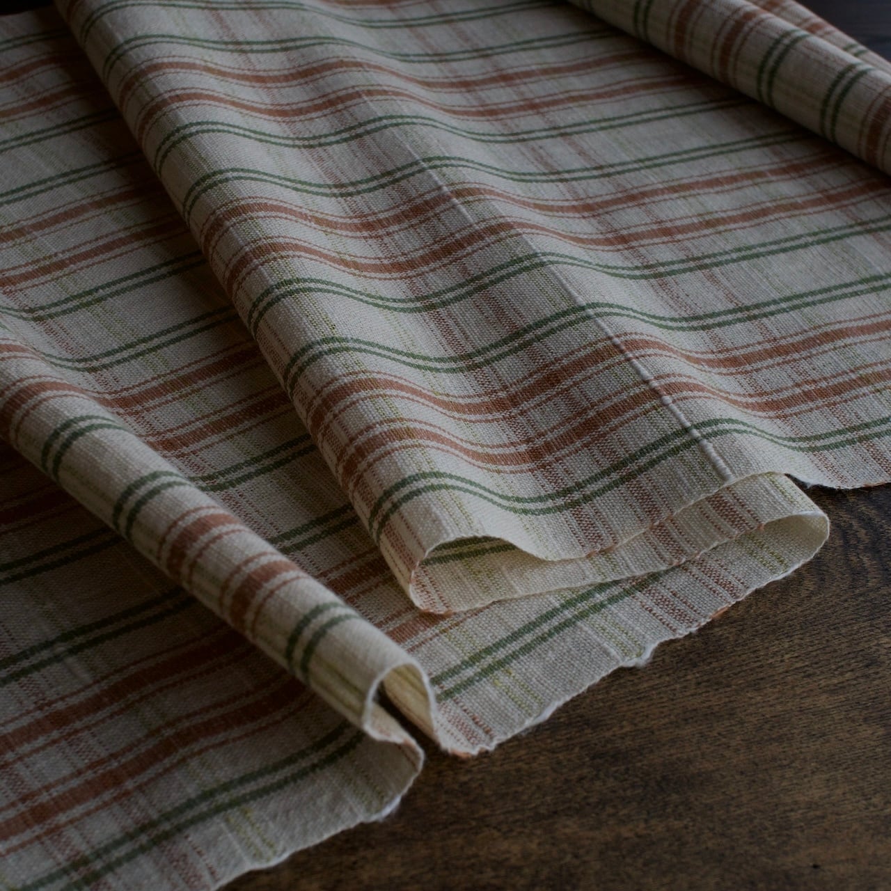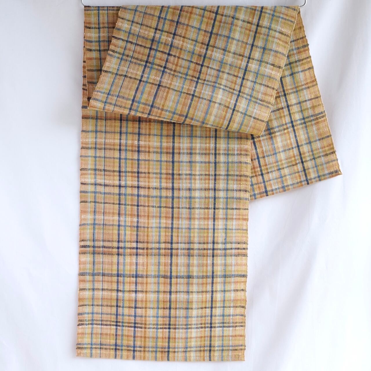 ::: 手紡ぎのため、糸の太さが全て均一になるわけではなく、また草木染めのため、同じ植物であっても毎回同じ色に染まるわけではありません。また手織りのため、常に全く同じ幅で織れるわけではなく、布の長さとともに多少の誤差が生じます。全て手作業で作られる布の特性をご理解いただきますよう、お願いいたします。