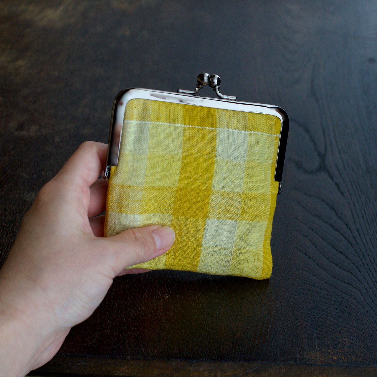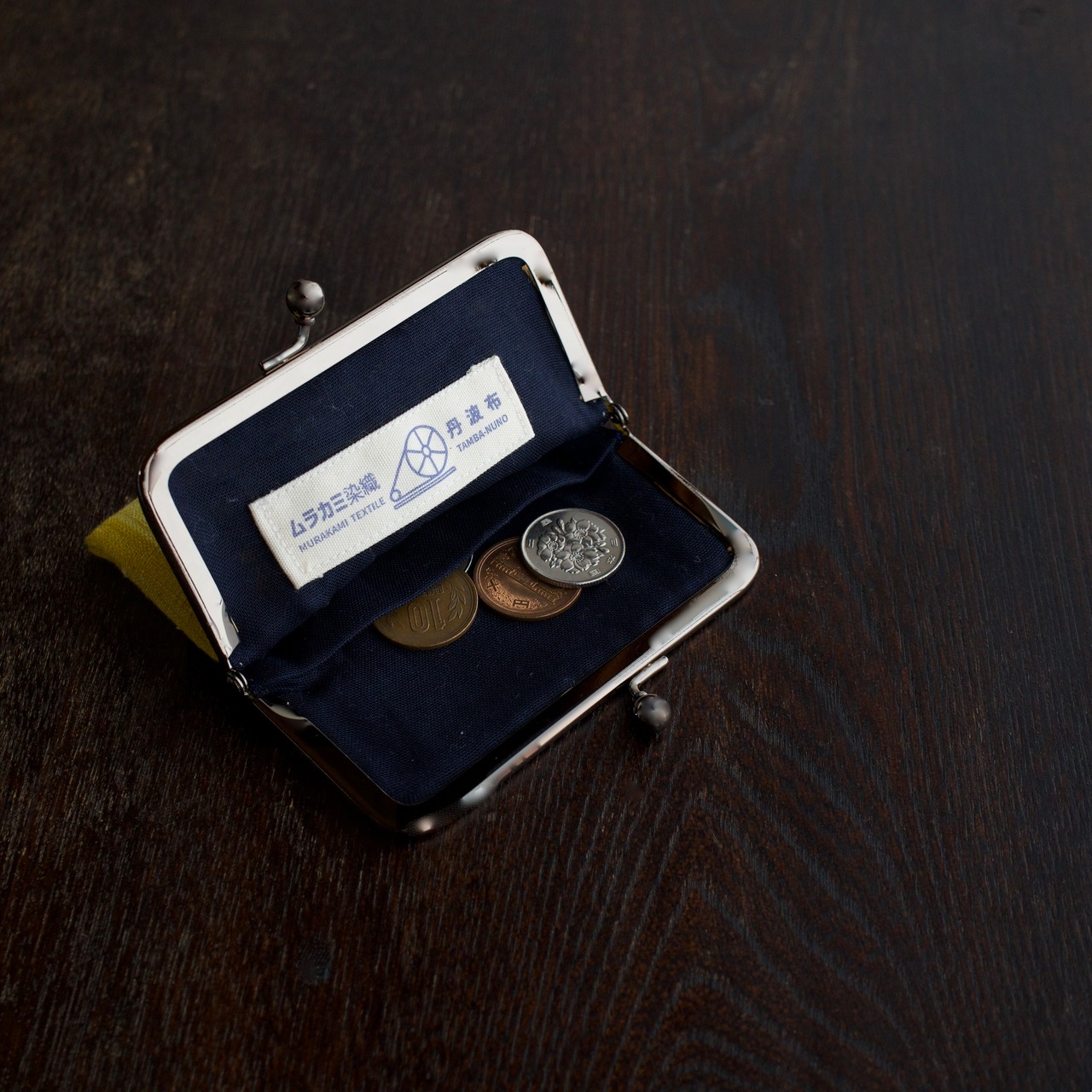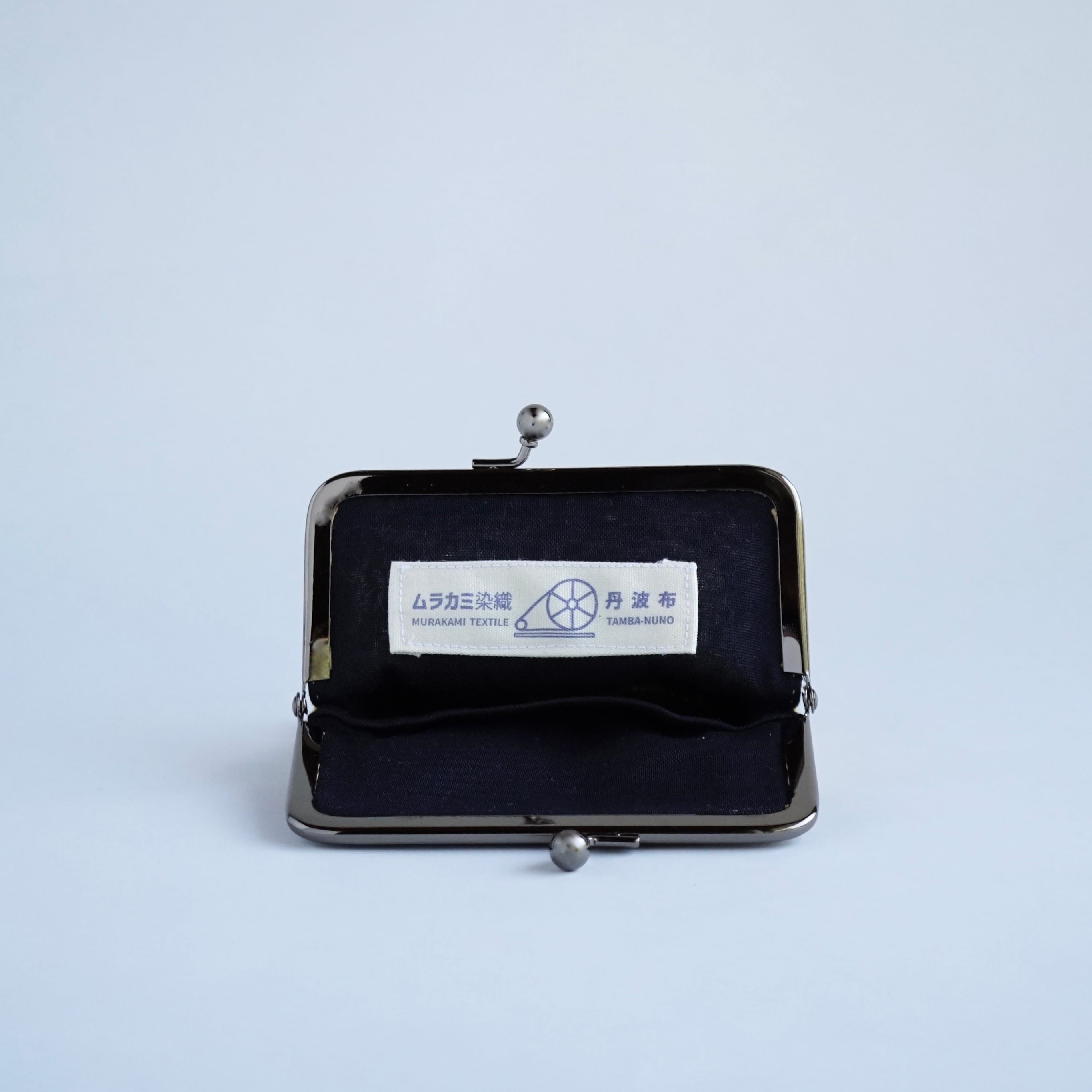 このがまぐちは、丹波市在住のがまぐち作家の方にお願いし、手縫いで仕上げていただきました。しかくいフォルムですが、ふっくらとした雰囲気になっています。