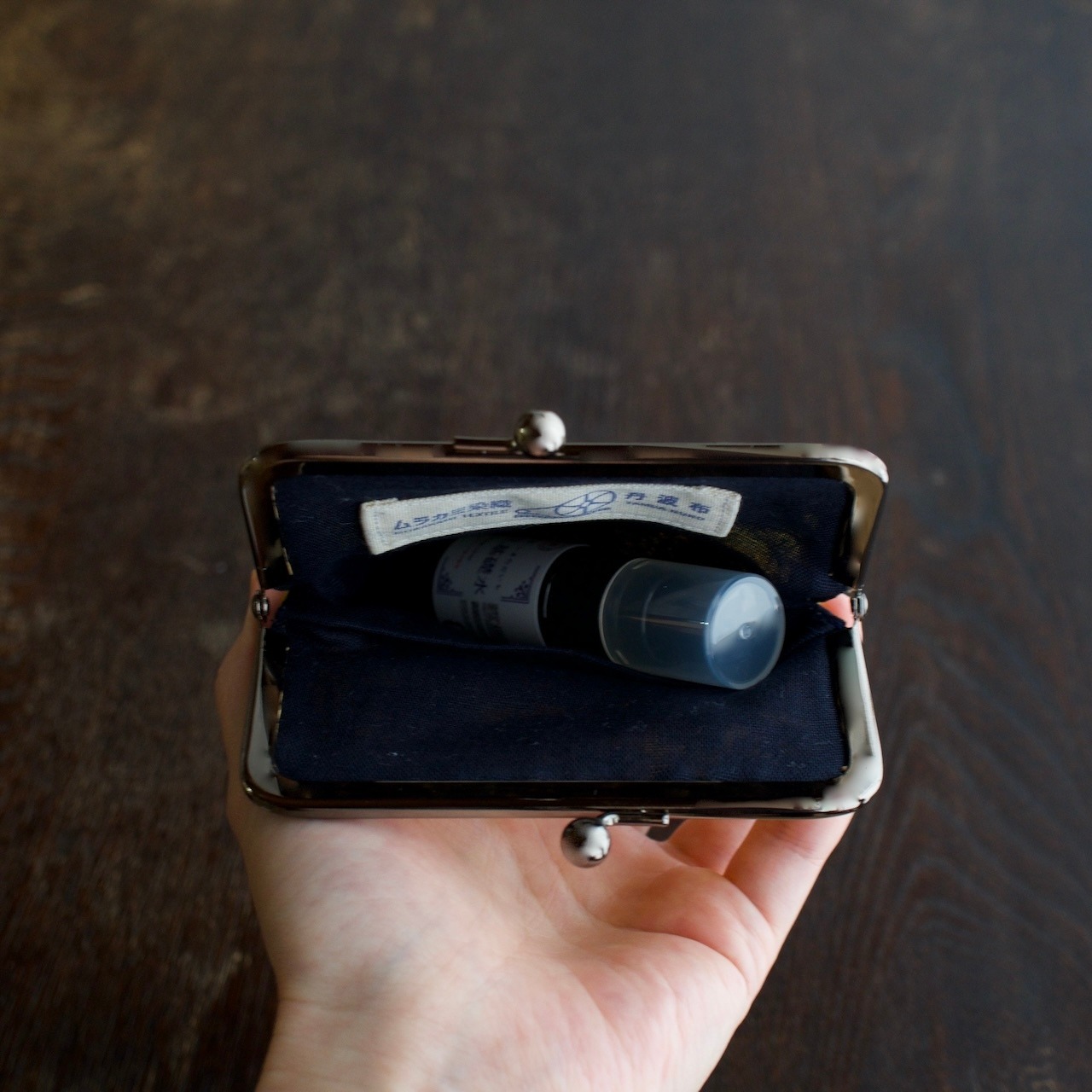 このがまぐちは手縫いで仕上げており、しかくいフォルムですが、ふっくらとした雰囲気になっています。